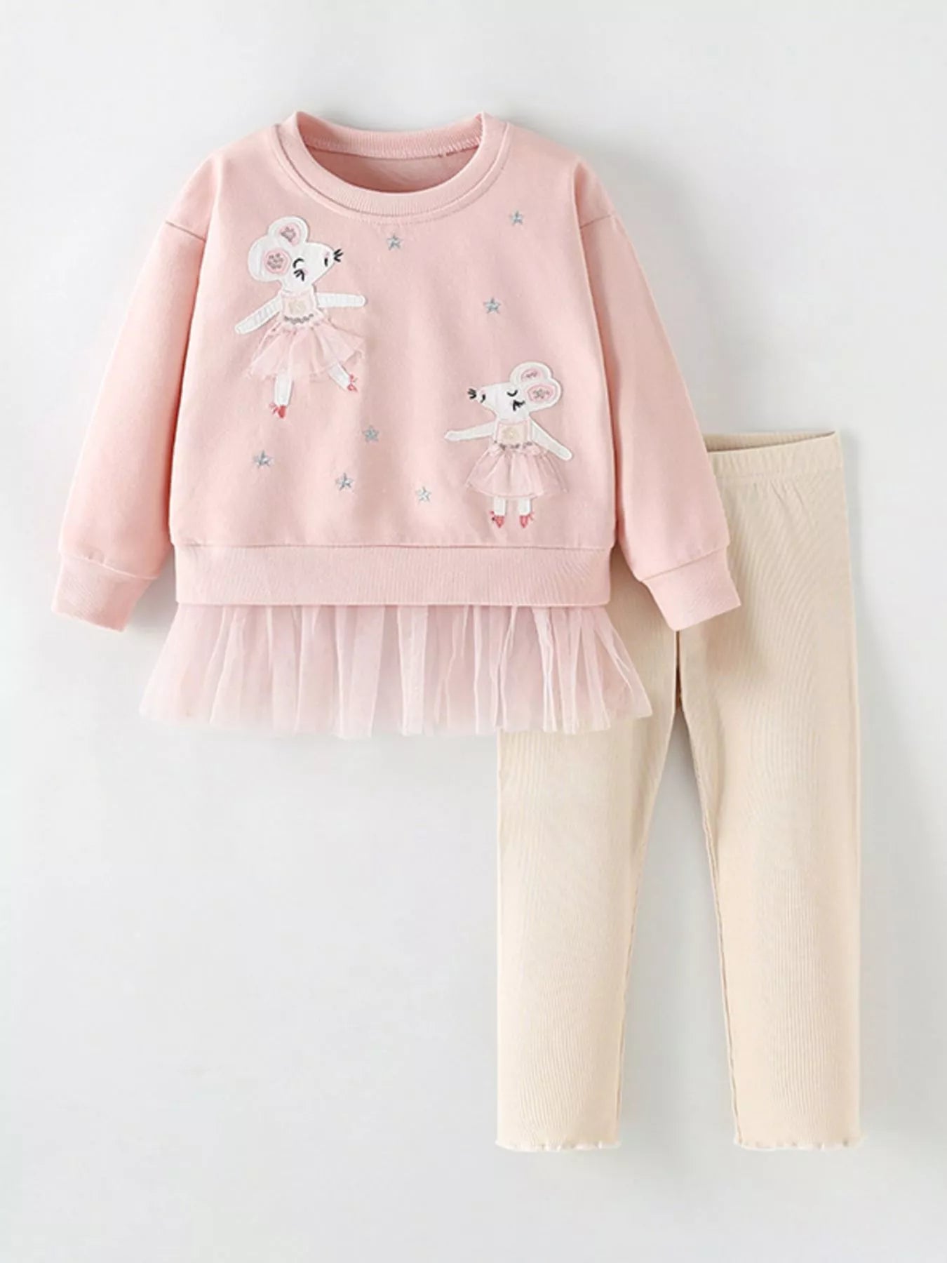 Children's Ballerina Mouse Applique Sweatshirt & Pants Set